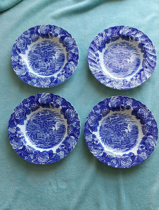 talerze angielskie niebieski wzor w Antyki i Kolekcje