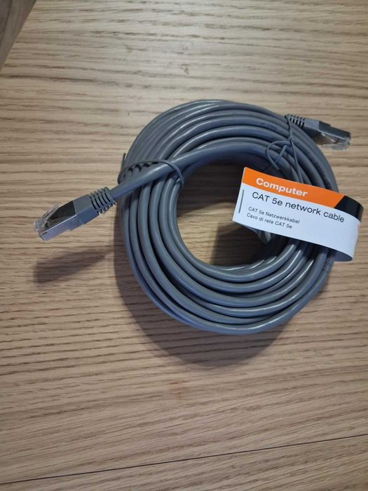 Kabel do internetu CAT 5e nowy. Doskonały sposób na szybkie i stabilne połączenie z siecią. Zapewnia wysoką jakość przesyłu danych. Idealny do użytku domowego lub biurowego. Długość 10m.