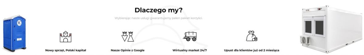 Oferujemy kompleksową usługę: wynajem kontenerów biurowych, kontenerów sanitarnych, toalet przenośnych, serwis toalety.