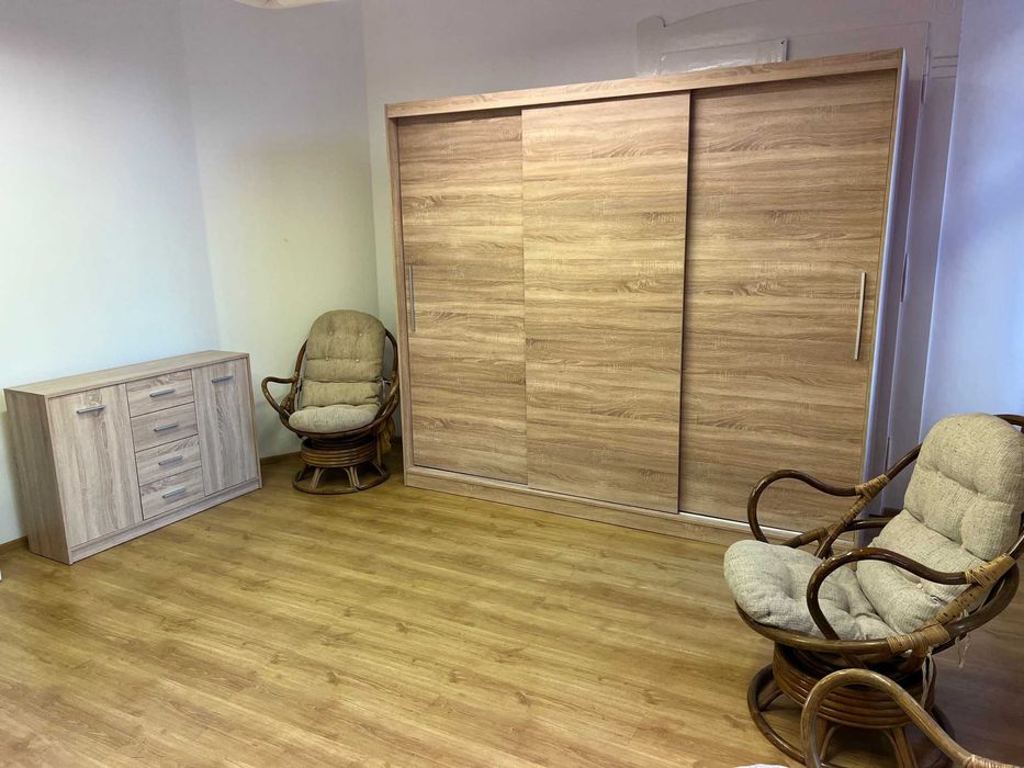 Umeblowane dwa łóżka( możliowść dodatkowego łóżka), duża szafa, komoda, stół , krzesła .
