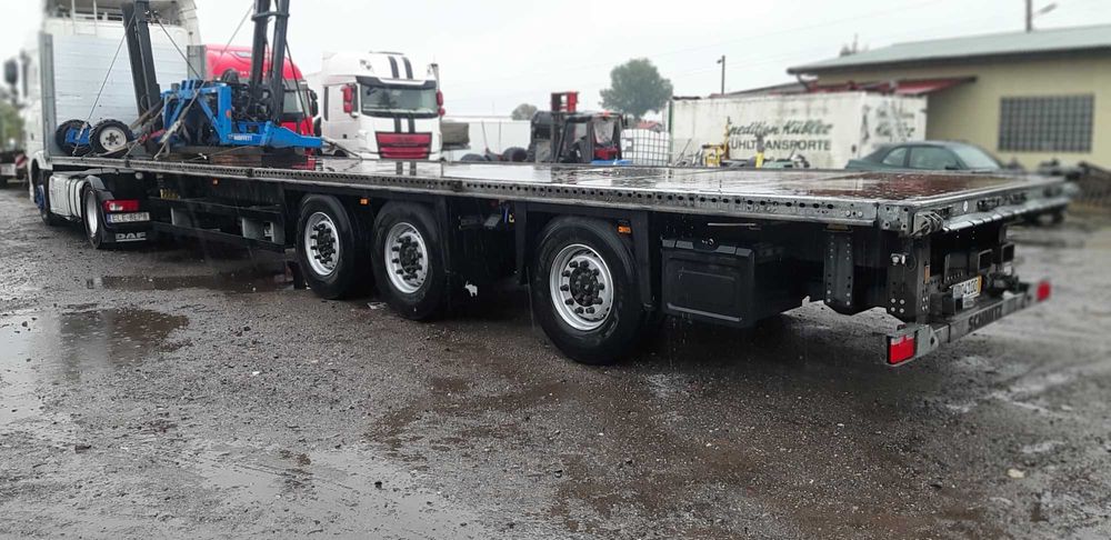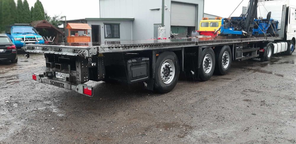 Naczepa platforma schmitz spr z Niemiec . Ostatnia oska skretna -pierwsza podnoszona. Uchwyt do wozka widlowego tyl. Opony 6szt nowe. Przebieg 371000km.