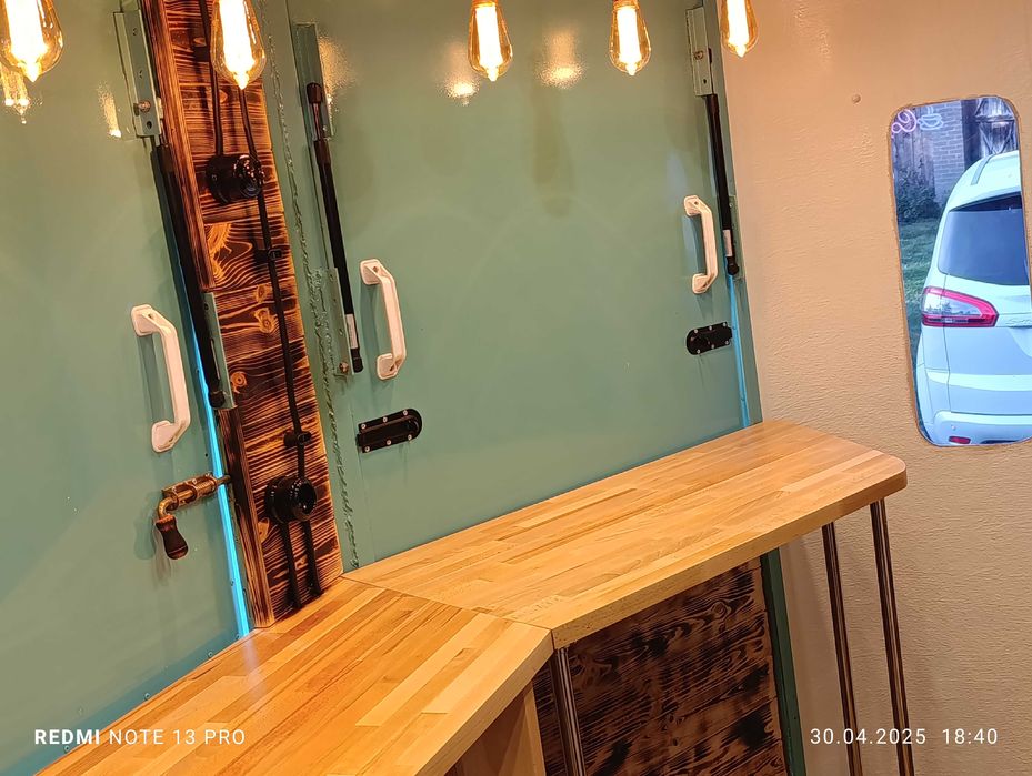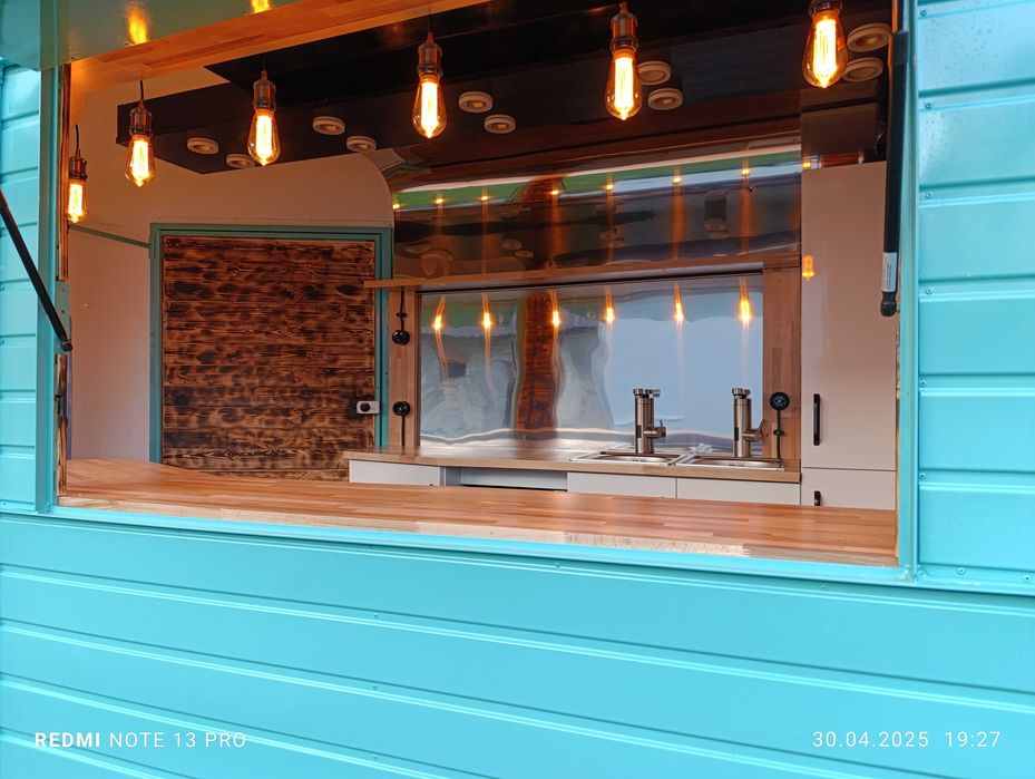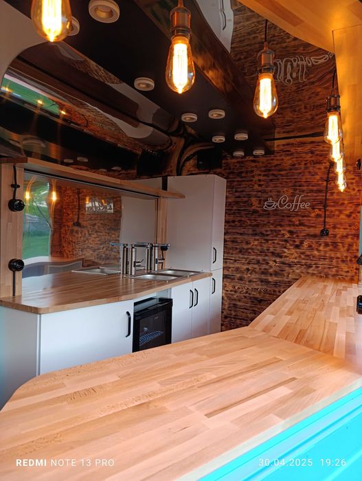 Witam Państwa. Mam do wynajęcia przyczepę w stylu retro. Bardzo ładnie się prezentuje, posiada ładne meble, dębowe blaty, lodówkę na napoje, kącik sanitarny, piękne oświetlenie w stylu vintage. W przyczepie można sprzedawać lody, napoje, drinki, kawę itp.