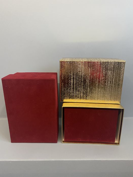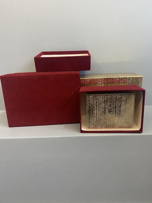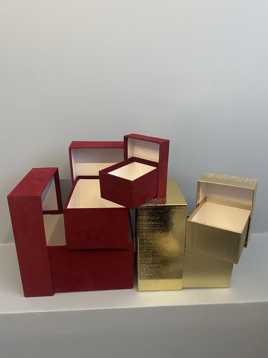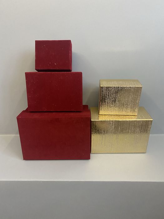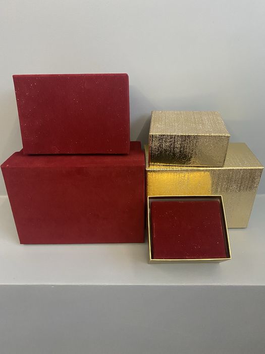 Pudełka ozdobne bordowe (pluszowe ) i złote (brokatowe)