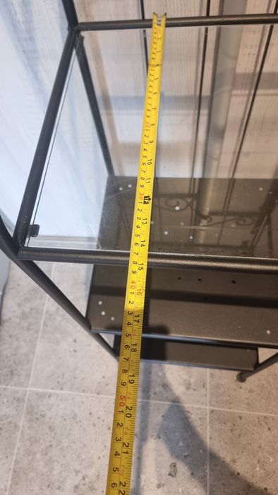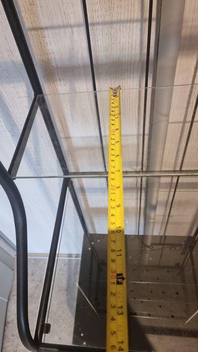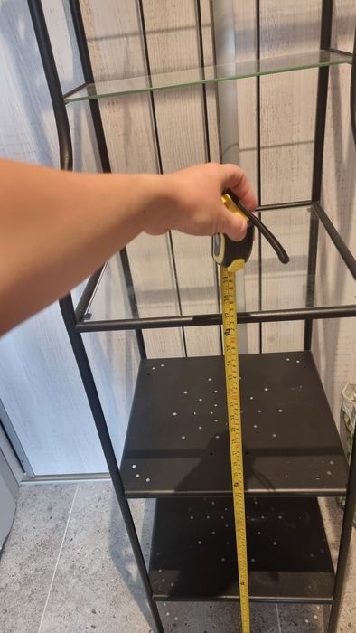 3 półki szersze - patrząc od dołu, 2 metalowe, na których można ustawiać cięższe rzeczy/ chemie domową, a 3 szklana u nas sprawdzała sią na kosmetyki i podręczne gadżety.