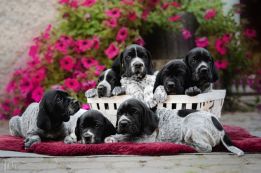 W naszej hodowli All Irish Gold pojawiły się dwa wyjątkowe mioty rasy Braque d’Auvergne (Wyżeł z Owernii). To niezwykle urokliwa i wszechstronna rasa — aktywna, oddana rodzinie, a jednocześnie delikatna i czuła. Braque d’Auvergne doskonale odnajduje się zarówno jako towarzysz codziennych spacerów i rodzinnych wycieczek, jak i partner zabaw z dziećmi.