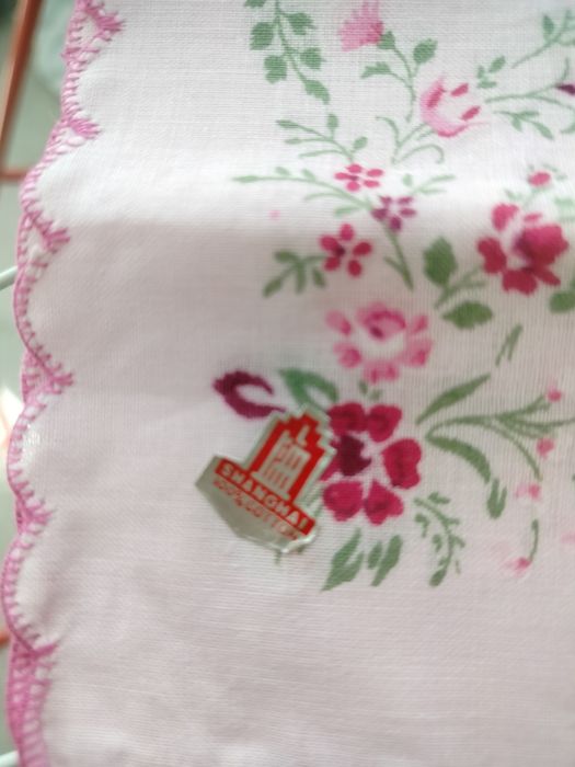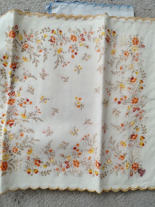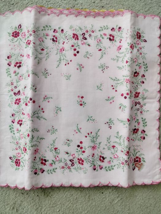 Zestaw serwetek chustek ozdobionych kwiatkami obszytych haftem Shanghai 100% bawełna chusteczki są nowe przeleżały w szafie w sumie 12 sztuk cena za wszystkie