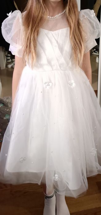 sukienka 146 biała w Ubranka dla dziewczynek