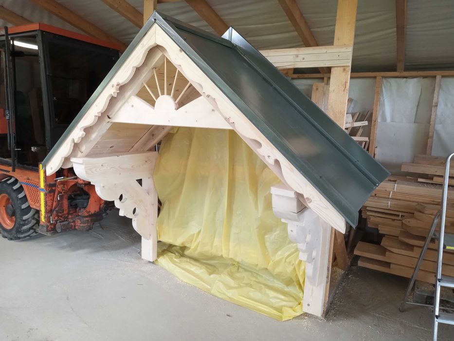 drewniany daszek nad drzwi w Budowa