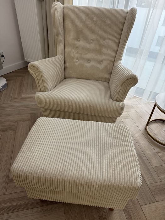 Fotel Werina (sztruks kremowy) wraz z podnozkiem
