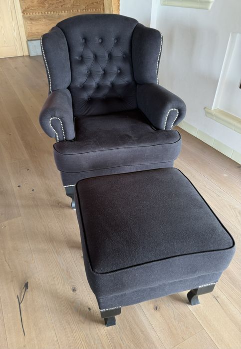 Fotel z podnóżkiem stan bdb czarny