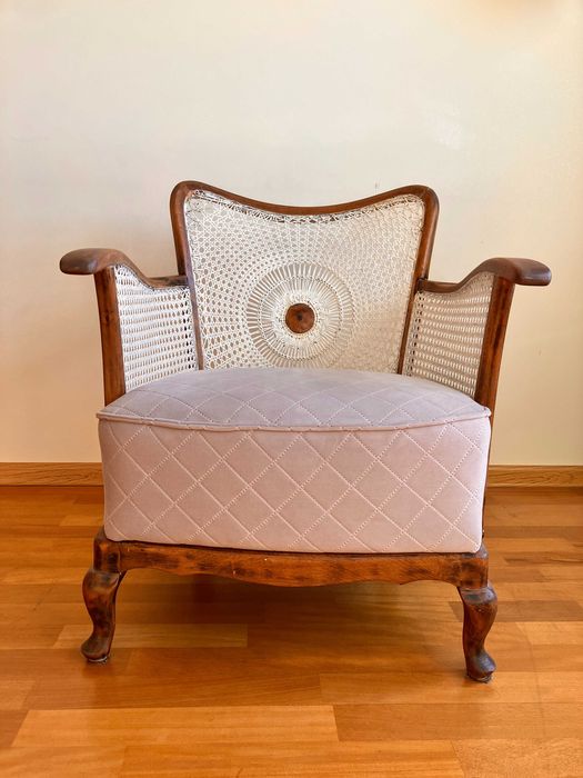 Różowy fotel PRL