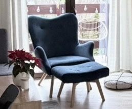 Fotel uszak plus podnóżek granatowy