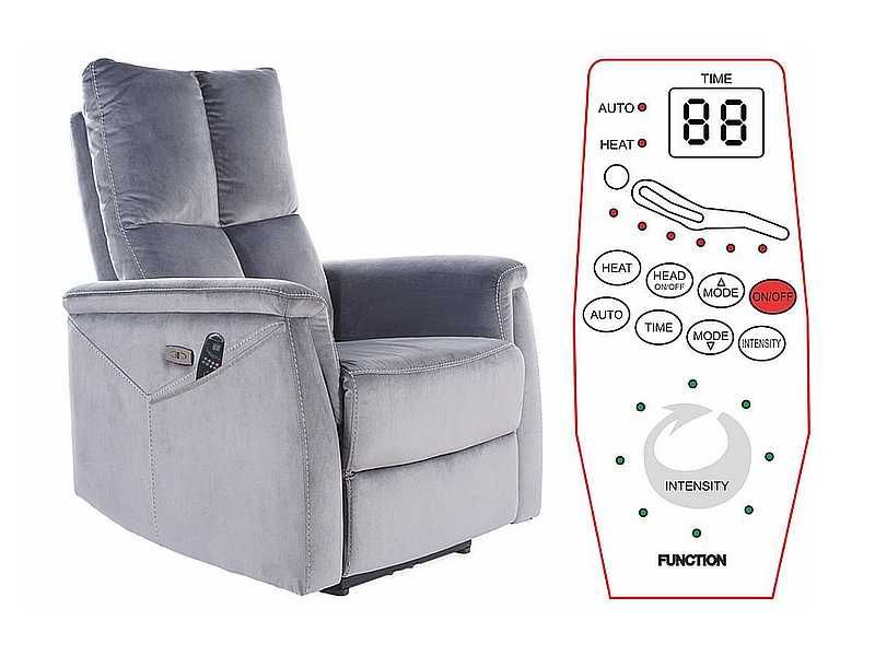 fotel PEGAZ M rozkładany ELEKTRYCZNIE z masazem szary welur OKAZJA