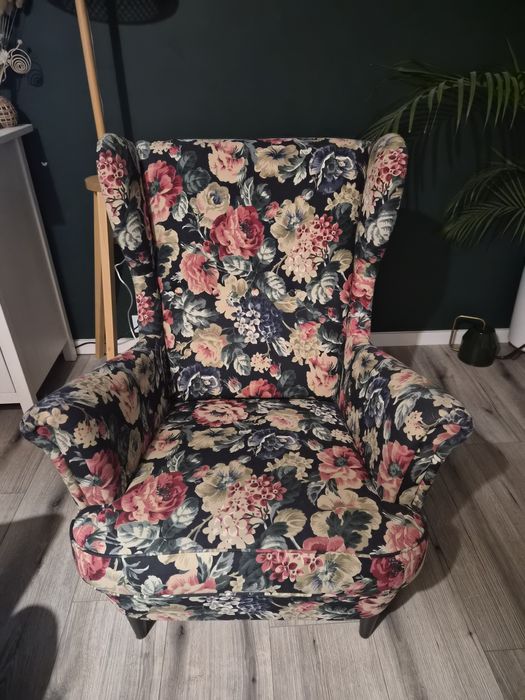 Fotel Strandmon Ikea w kwiaty, stan super