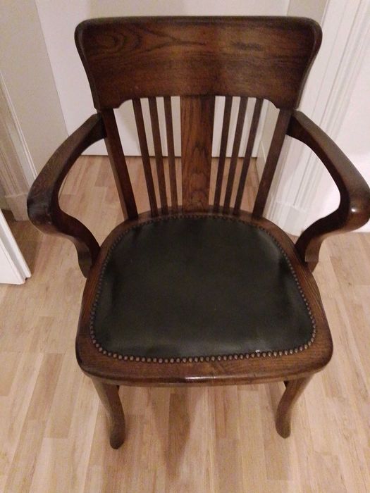 Antyczny fotel drewniany – skóra, ciemny brąz