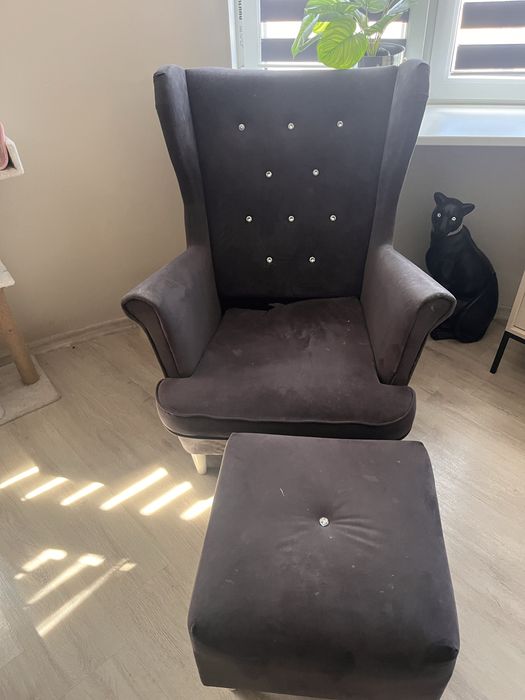 Fotel uszak a'la ludwik z podnóżkiem w komplecie