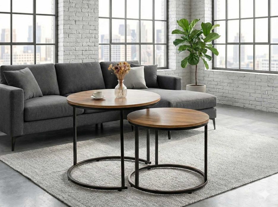 NOWY STOLIK Kawowy 2w1 Ława LOFT okrągły ZESTAW