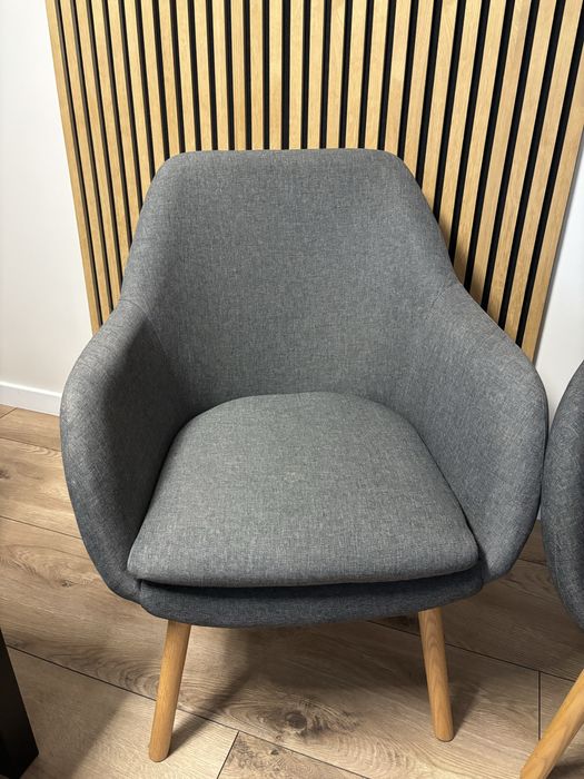 Nowoczesny fotel tapicerowany szary na drewnianych nogach
