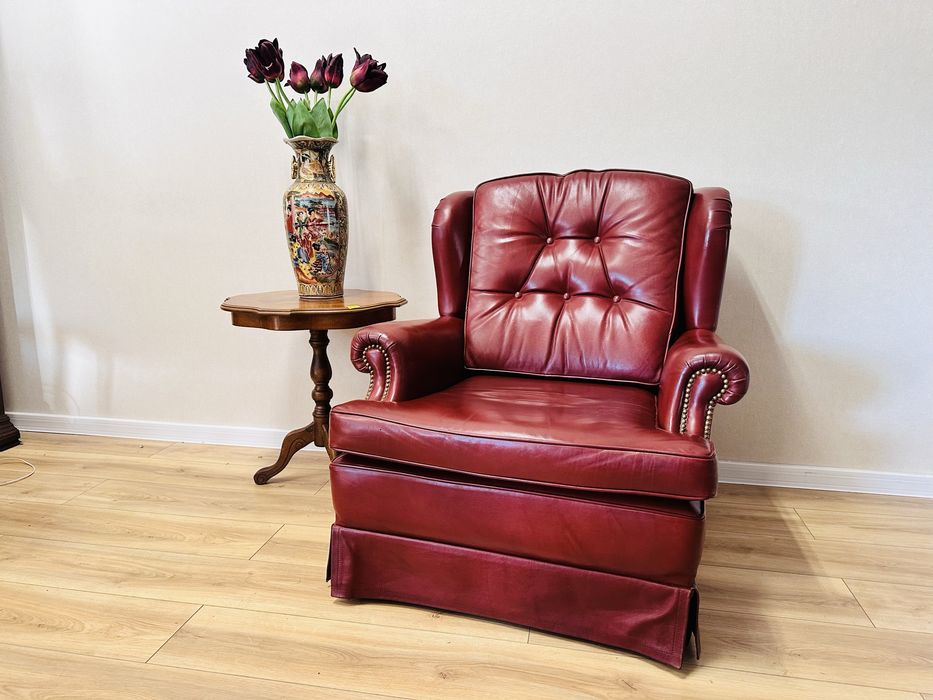 Gabinetowy fotel uszak w stylu angielskim SKÓRA :)