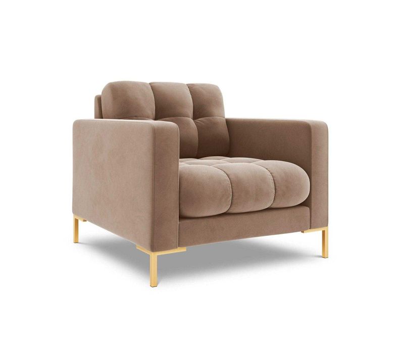 Fotel aksamitny BALI beżowy ze złotą podstawą (1)