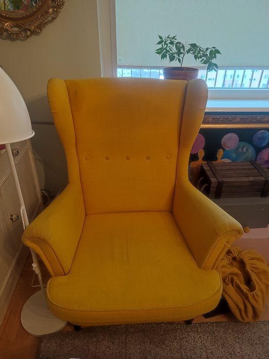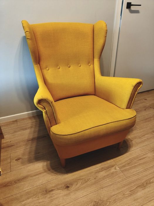 Fotel uszak Ikea Strandmon żółty + podnóżek