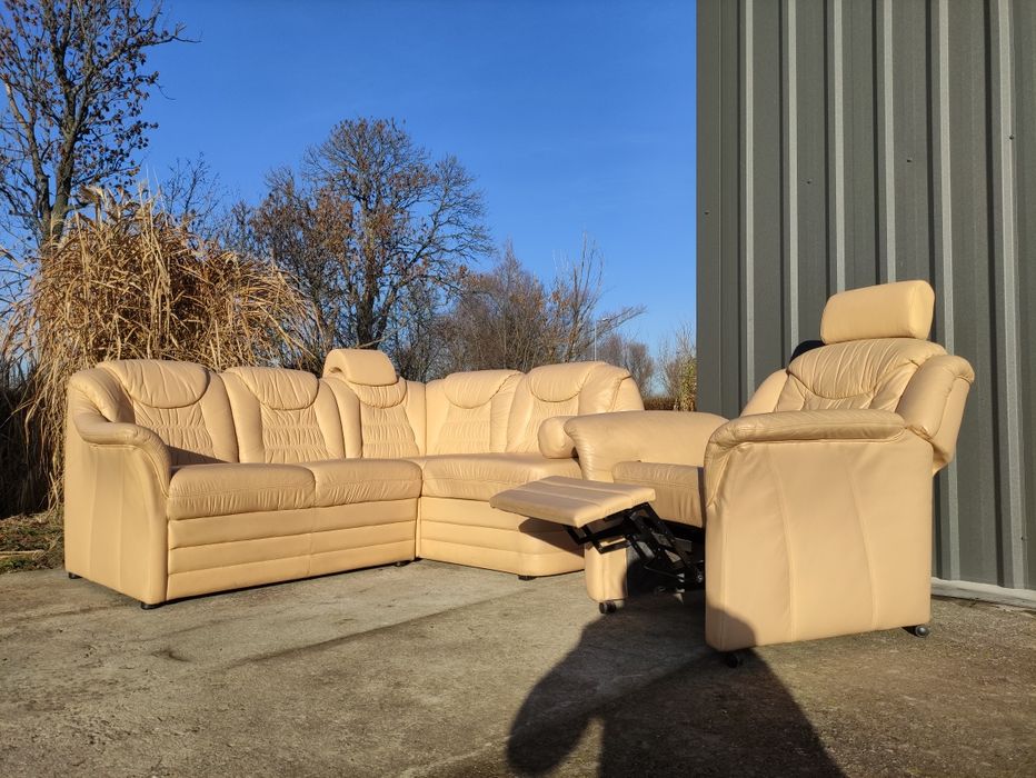 Narożnik  skórzany/rogówka/ wypoczynek+fotel relax- skóra naturalna!