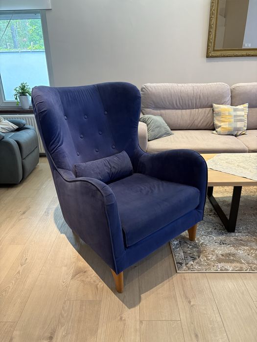 Granatowy fotel uszak