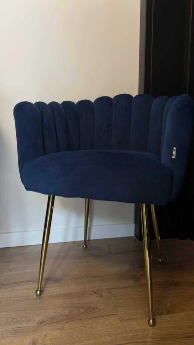 Fotel granatowy zlota podstawa