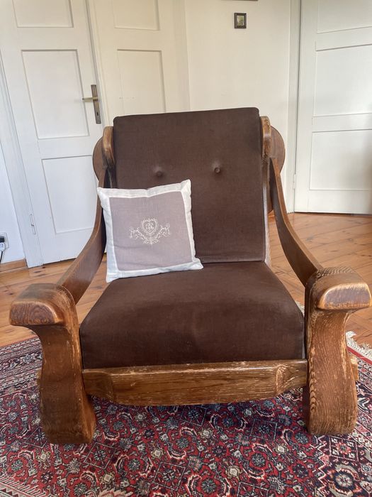 Fotel stylowy drewno duży wygodny