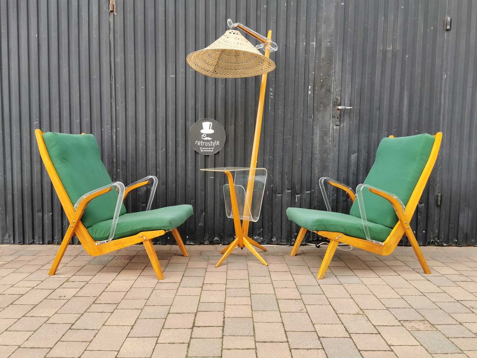 Fotele+ lampka stojąca ÚLUV, Czechosłowacja '50-60 Design Prl- UNIKAT!