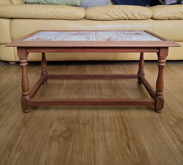 Klimatyczny rustykalny stolik kawowy z kaflami - drewno + ceramika