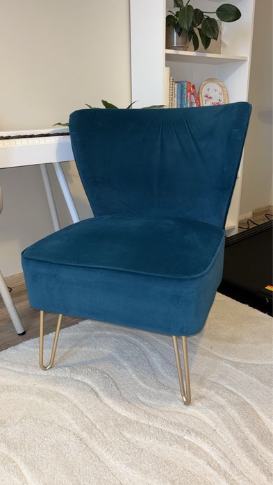 Fotel - turkusowy, złote nóżki