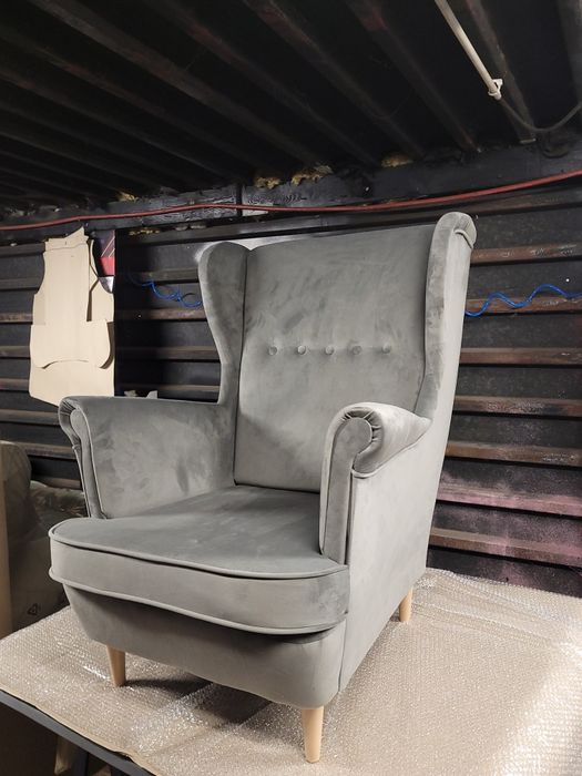 Fotel Ikea uszak Strandmon z podnozkiem