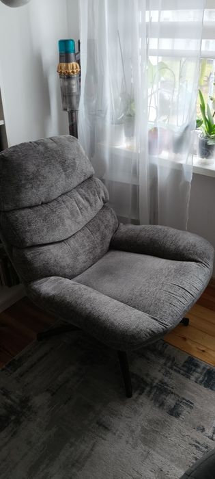 Fotel w kolorze szarym.