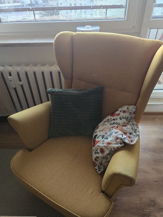 Fotel uszak  musztardowy żółty miodowy typu Ikea Strandmon 2 pokrowce