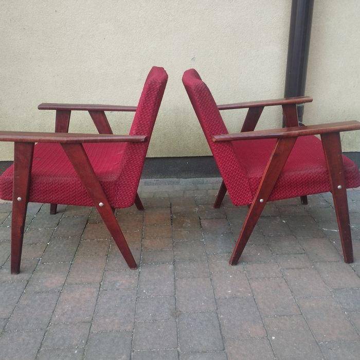 Fotele z PRL, 2 sztuki, vintage, loft, mocne, solidne, twarde drzewo