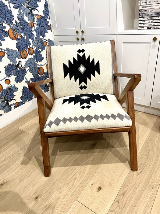 Fotel boho drewniany tapicerowany