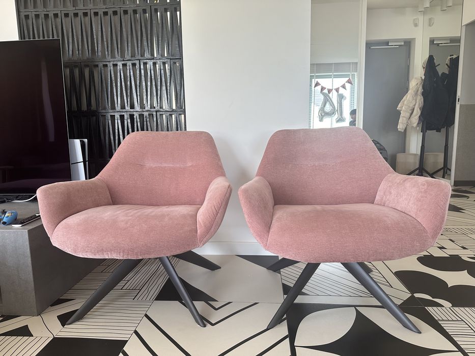 fotel tapicerowany wypoczynkowy 2 sztuki blady róż stan bdb
