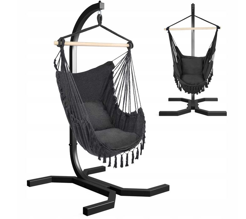 FOTEL Wiszący Brazylijski WOLNOSTOJĄCY Szary Bujany Relaksujący NOWY