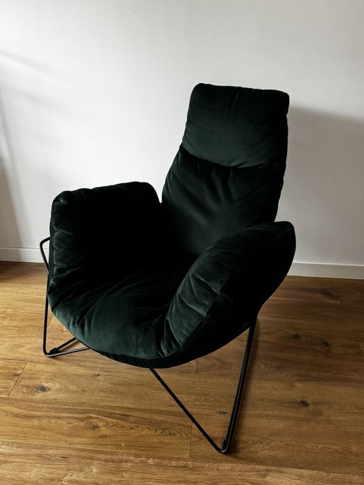 Ciemnozielony fotel z podnóżkiem