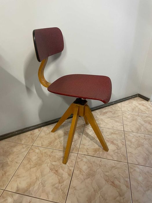 Krzesło obrotowe biurowe Vintage drewniane lata 50?