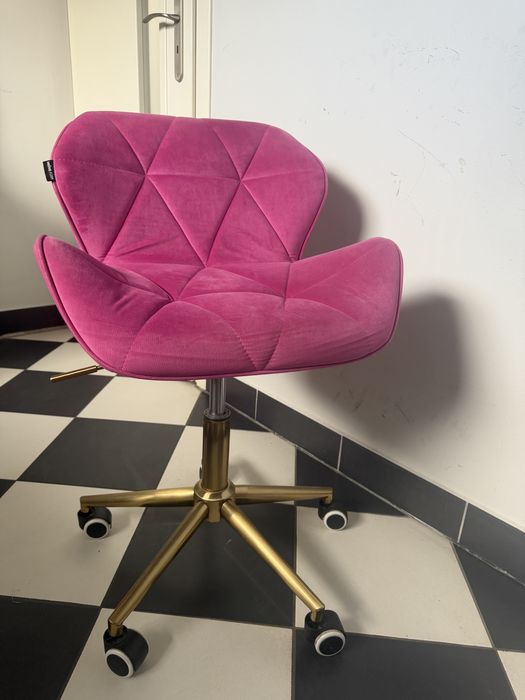 Fotel krzesło biurkowe dla dziewczyny rózowe velwetowe