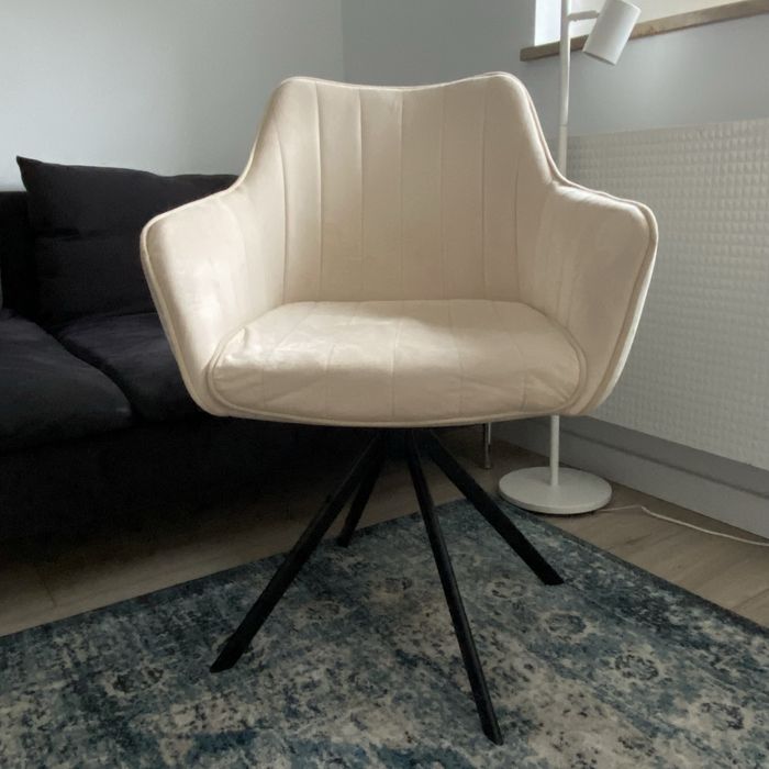 krzesło obrotowe fotel beżowy/ecru z czarną podstawą