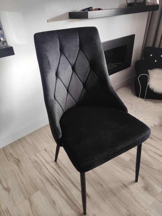 Krzesło welurowe pikowane czarne