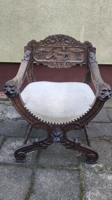 Krzesło / Tron rzeźbiony nożycowy