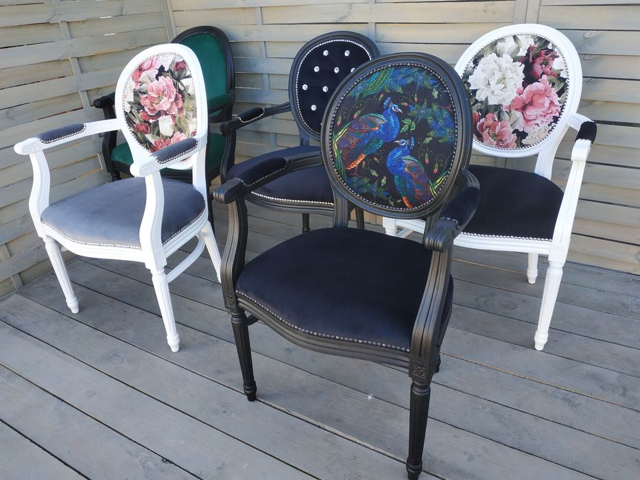 Krzesła z obociem welurowym styl glamour/boho