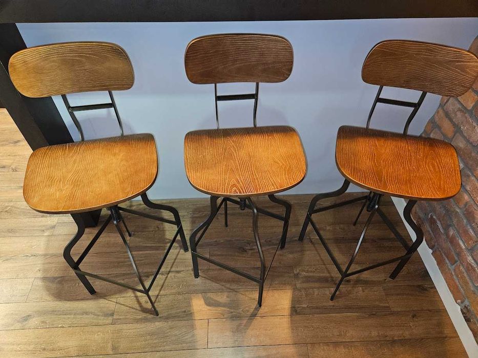 Industrialne krzesła barowe loft – regulowana wysokość (3 szt.)
