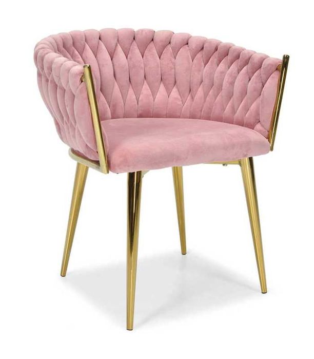 Krzesło Welurowe GLAMOUR – Złote Nogi Pleciony Nowoczesny 3 Kolory
