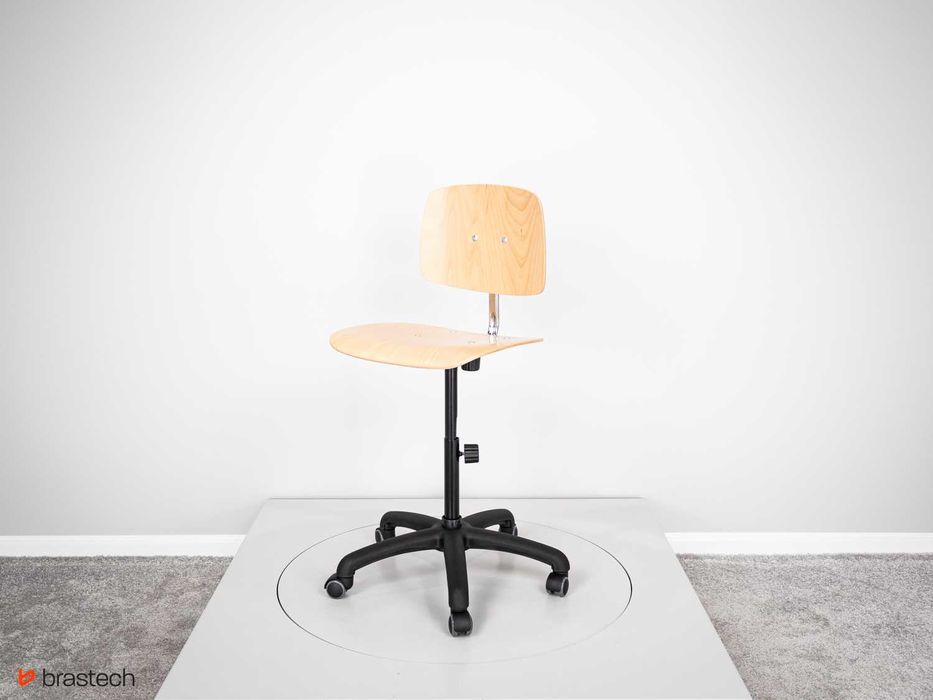 Krzesło warsztatowe, sklejka bukowa, na kółkach, lakierowane