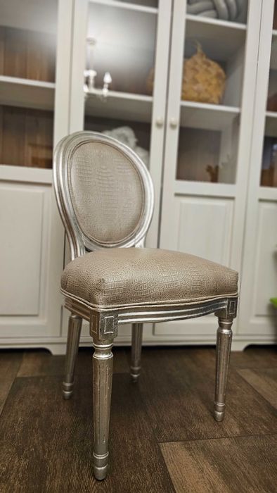 Stylowe krzesło glamour / ludwik – srebrne, tapicerowane